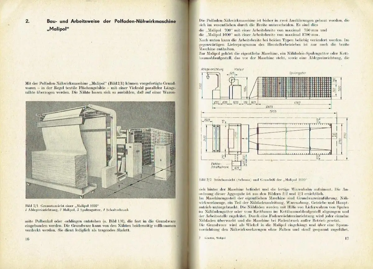 guter Zustand, geringe Gebrauchs- und Alterungsspuren: Einband und Seiten teils etwas eselsohrig - Rückenoberkante gering defekt - Papier teils etwas vergilbt, aber Seiten sauber und ordentlich - Deckel und die ersten Seiten mit kleinem Einriss in der Unterkante - Deckel mit kleinem Oberflächenschaden (weiße Stelle), Nachdem auch die dritte Modifikation des Nähwirkverfahrens — die Malipol-Technologie — seit einiger Zeit einen technischen Reifegrad erreicht hat, der die Einführung in die Grossproduktion rechtfertigte, ist es nunmehr an der Zeit, auch über diese Technologie in der Fachliteratur zu berichten. Aus diesem Grunde wurde die vorliegende Broschüre entwickelt, die als drittes Heft der Reihe „Neue Textiltechnologien einen umfassenden Überblick über Technik und Ökonomie der Malipol-Technologie gibt. Diese zuletzt entwickelte Nähwirktechnologie beinhaltet weniger ein Herstellungs- als vielmehr ein Veredlungsverfahren; handelt es sich doch um die Umwandlung einfacher textiler Flächengebilde in eine wertvollere Qualität durch Übernähen mit hochwertigem Fadenmaterial und entsprechende Veredlungsprozesse. Trotzdem kommt ihr auf Grund ihrer ökonomischen Vorteile — zusammen mit einer Reihe anderer, in den letzten Jahren entwickelter Verfahren — im Hinblick auf die Erhöhung der Arbeitsproduktivität in der Textilindustrie eine grosse Bedeutung zu. Da der Beruf des Nähwirkers seit 1964 in der Systematik der Ausbildungsberufe enthalten ist, erschien es ratsam, zunächst ein Lehrbuch zu entwickeln, das dem Lehrling bzw. dem umschulenden Facharbeiter oder Meister als Grundlage sowohl für den Unterricht in Berufs- oder Betriebsschulen als auch für das Selbststudium dienen kann. Selbstverständlich soll auch dem Lehrer eine Unterlage für die Vorbereitung des Unterrichts und darüber hinaus weiteren interessierten Kreisen ein Nachschlagewerk in die Hand gegeben werden. Autor und Redaktion sind sich darüber klar, dass auf Grund der relativ kurzen bisherigen Entwicklung der Malipol-Technologie in den nächsten Jahren noch manche Veränderung erfolgen wird. Trotzdem läßt sich heute bereits das Wesentliche der Technologie mit bleibendem Wert aussagen. Die Broschüre behandelt die Malipol-Maschine mit ihren Zusatzaggregaten, ihre Einstellung, Bedienung und Wartung, die Muster- und Einsatzmöglichkeiten für Malipol-Stoffe sowie in kurzen Abrissen die wirtschaftliche Bedeutung und die absehbare weitere Entwicklung des Verfahrens in methodisch geordneter, leicht faßlicher Form. Die textliche Darstellung wird durch zweckmäßige Bildauswahl unterstützt und veranschaulicht. Die Bilder sind zum Teil vereinfacht bzw. schematisiert, um das Erkennen der wesentlichen Vorgänge zu erleichtern." - Einführung - Bau und Arbeitsweise der Polfaden-Nähwirkmaschine "Malipol" - Einarbeitung, Bedienung und Wartung der Malipol-Maschine - Nähfaden und Grundware für die Malipol-Maschine - Bindungs- und Mustermöglichkeiten - Einsatzmöglichkeiten für Malipol-Erzeugnisse - Die weitere Entwicklung der Malipol-Technologie, kartoniert, ca. 16,5 x 22,5, 117 Seiten mit zahlreichen Bildern