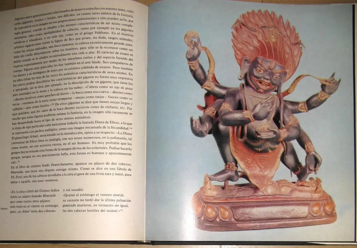 muy buen estado, poco uso y los signos del envejecimiento - chaqueta defectuoso bajo, Primera edición en español Título original de la obra en alemán: Fabeltiere und Dämonen Copyright © 1977 de la segunda edición alemana by Edition Leipzig "He aquí la galeria de animales fabulosos y demonios que, desde milenios, han aparecido en los mitos y religiones de los pueblos. Son seres con figura antinatural y con fuerza sobrenatural: ángeles, demonios, dragones, grifos, centauros, etcétera.Aquí recobran su contenido ideológico y su continuidad histórica.", Tapa dura con sobrecubierta, ca. 24,5 x 27,5, 278 Seiten mit vielen Bildern / Páginas con muchas imágenes