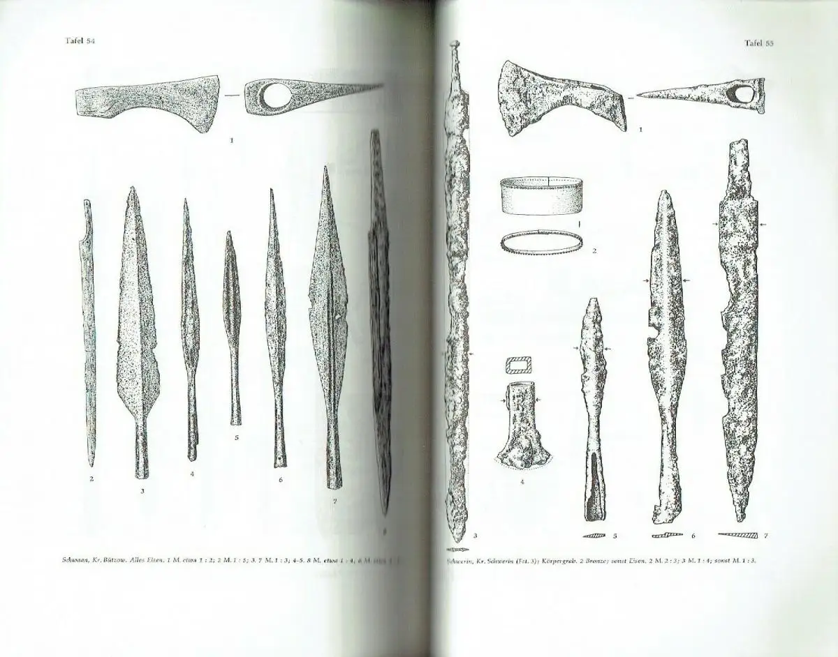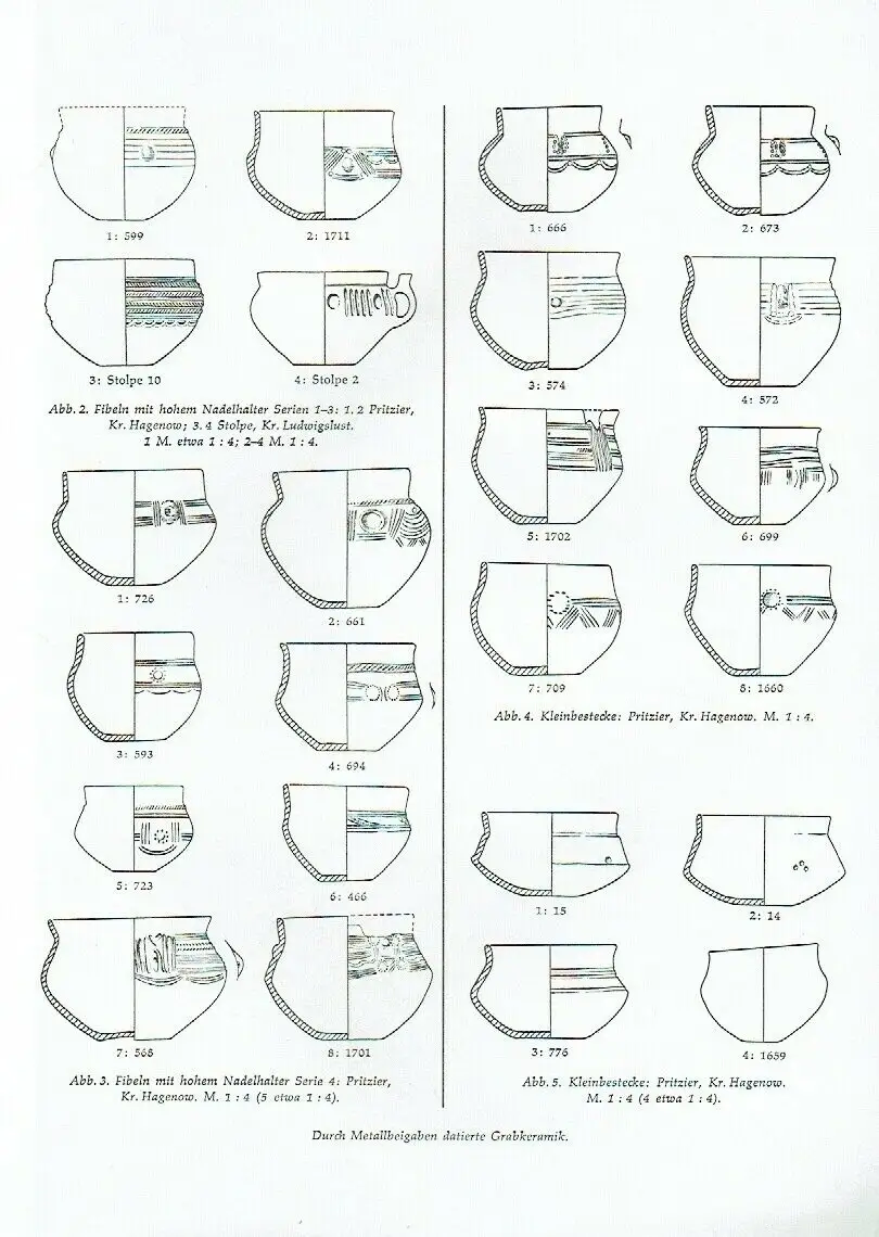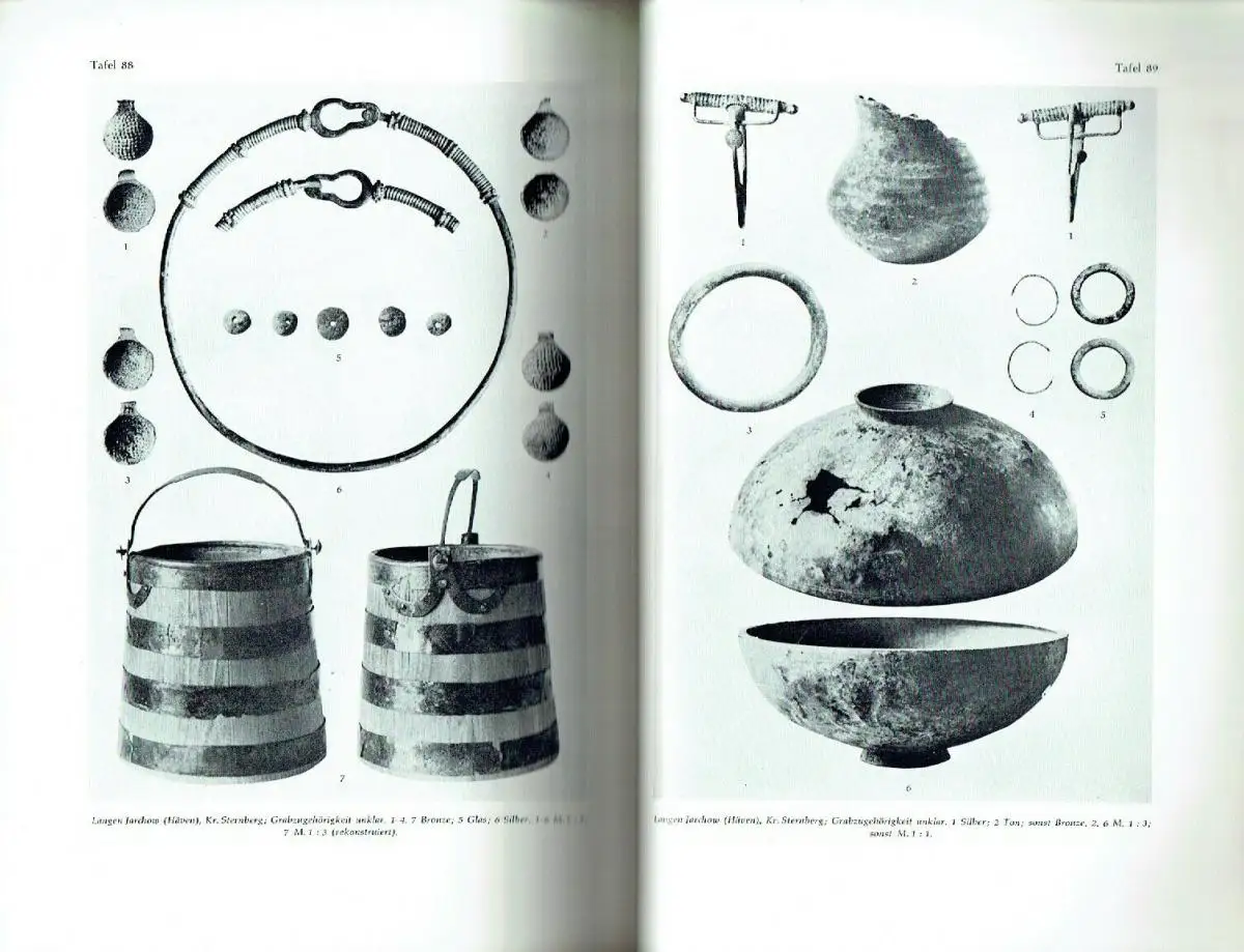 guter Zustand, geringe Gebrauchs- und Alterungsspuren: Umschlag leicht verschmutzt - beide Deckel an der oberen Ecke leicht angeknickt - Seiten sauber und ordentlich - Rückseite innen mit altem Besitzerstempel - Rauchergeruch, Der Arbeit liegt eine Materialaufnahme in den drei Bezirken Rostock, Schwerin und Neubrandenburg zugrunde. Diese durch staatliche Verwaltung geschaffenen Grenzen bestimmten den Raum des Untersuchungsgebietes. Der Bezirk Rostock umfaßt den breiten Küstenstreifen im Norden mit seinen vorgelagerten Inseln und Halbinseln und reicht von der Lübecker Bucht im Westen bis zum Oder-Haff im Osten. Die Grenze des Schweriner Bezirkes fällt im Westen etwa mit den sich südlich an die Lübecker Bucht anschließenden Seen (Ratzeburger See und Schaalsee) zusammen, im Süden hingegen mit der Elbe. Der Bezirk Neubrandenburg endet im Osten im Kleinen Haff der Oderbucht und südlich davon wenig östlich des Randowbruches. Die Grenzen des Arbeitsgebietes sind also im Norden, Westen und Osten natürlich vorgezeichnet, nicht jedoch im Süden, wo die Trennungslinie mitten durch das Seengebiet verläuft. Unglücklich in geographischer und kulturhistorischer Hinsicht erscheint außerdem die Aufgliederung der Prignitz in einen westlichen zum Bezirk Schwerin und einen östlichen zum Bezirk Potsdam gehörenden Teil (Karte 1). Der landschaftliche Charakter des Gesamtgebietes ist bemerkenswert einheitlich durch die letzte Vereisung im Pleistozän geformt worden. Der Baltische Höhenrücken teilt mit seiner kräftig ausgebildeten inneren und äußeren Endmoräne den Raum recht deutlich in ein flach-welliges, durch Seen, Sölle und Moore aufgelockertes Grundmoränengebiet im Norden und in eine ausgedehnte Sanderzone im Süden (Karte 1). Im Rückland der inneren Endmoräne, die sich von der Lübecker Bucht über Wismar und Feldberg zur Oder zieht, liegen Seen von Zungenbecken-Charakter (Kummerower, Malchiner und Tollense-See). Das Gewässernetz der nördlich anschließenden Grundmoränenlandschaft dürfte im wesentlichen durch die nach Nordwesten abfließenden eiszeitlichen Schmelzwässer entstanden sein. Die äußere Baltische Endmoräne, von der Südspitze des Schweriner Sees zum Südende der Müritz und weiter nach Südosten verlaufend, begrenzt die jungglaziale Landschaft nach Süden. Die Gewässer südlich dieser Eisrandlage fließen im Elbe-Urstromtal und im Oderbruch zusammen. Gegenstand der Arbeit sind die Bodenfunde des umschriebenen Gebietes aus dem 3. bis 6. Jh. oder, genauer begrenzt, aus der jüngeren römischen Kaiserzeit und der Völkerwanderungszeit. Ich bemühe mich zunächst, das Material typologisch und chronologisch zu ordnen und dann, darauf aufbauend, die Kulturveränderungen und -beziehungen zu erfassen. Weiterhin werde ich versuchen, den Ablauf der Besiedlungsgeschichte darzustellen. Sie muß von besonderem Interesse sein, weil die germanische Bevölkerung nach Aussage der Bodenfunde das Land nahezu völlig aufgab ... - Fundgattungen - Siedlungen - Gräber - Hort- und Baggerfunde - Fundstoff - Tracht und Schmuck - Bewaffnung und Reiterausrüstung - Geräte - Tongefäße aus Gräbern - Tongefäße aus Siedlungen - Metall-, Glas- und Holzgefäße - Münzen - Urnenharz - Kulturgeschichtliche Folgerungen - Kataloge, Nachweise, Verzeichnisse, kartoniert, ca. 21 x 30, Seiten mit 86 Bildern im Text und weiteren zahlreichen auf 111 Tafeln und 11 Karten