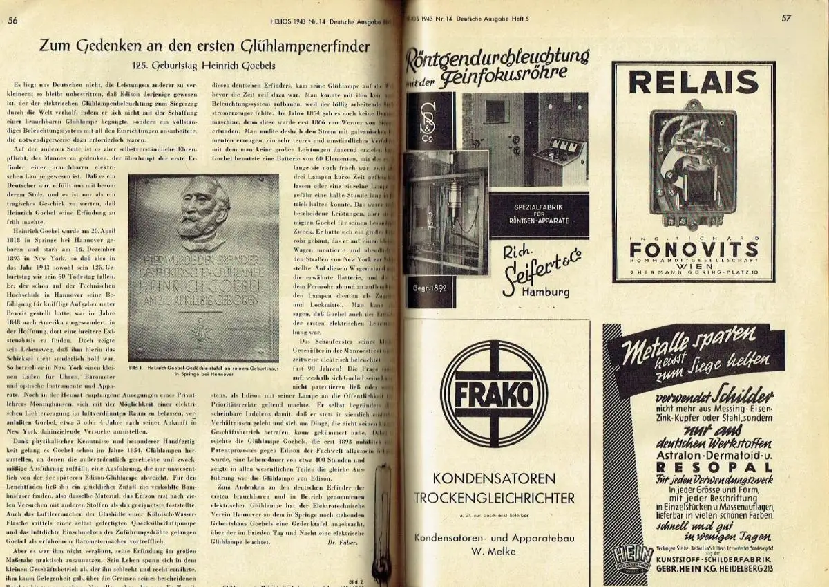 Helios Fach-Export-Zeitschrift für Elektrotechnik und Funktechnik.