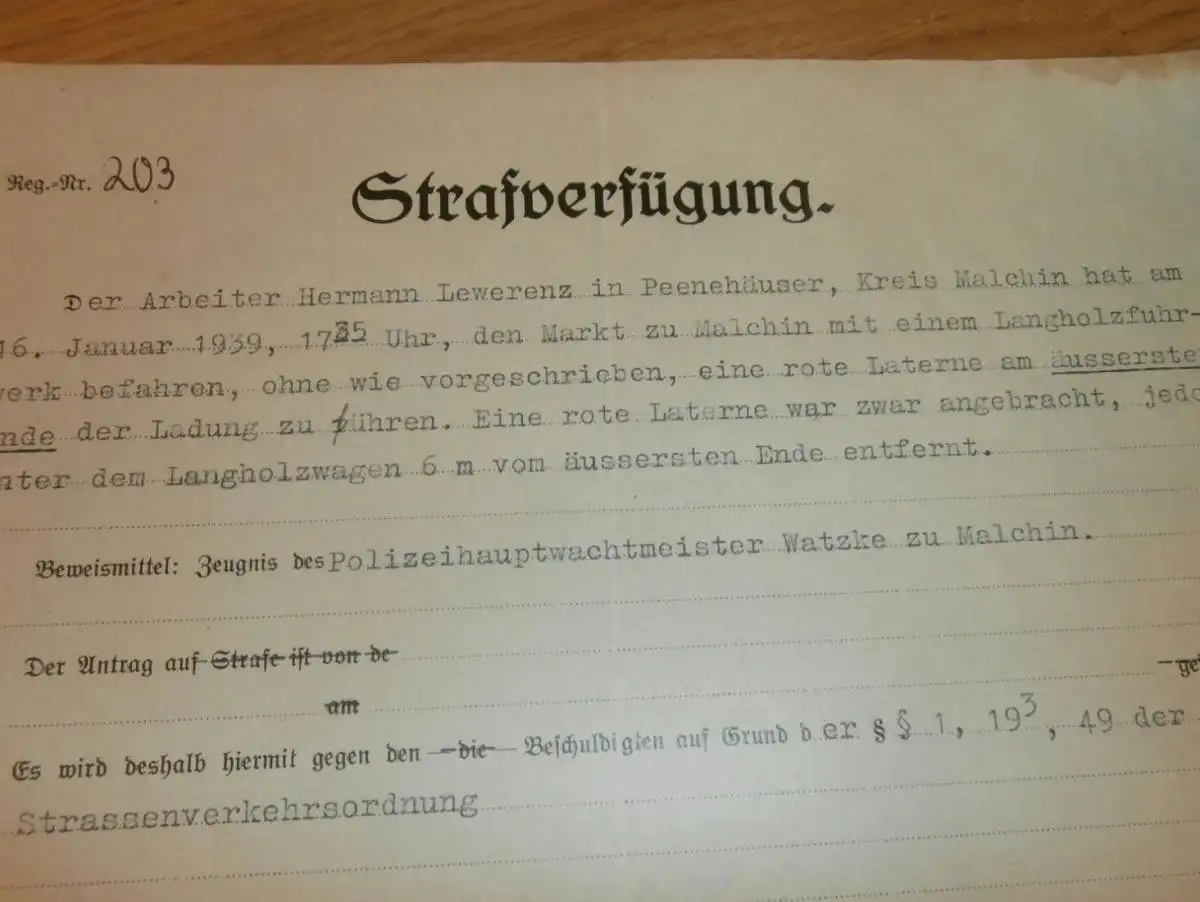 Hermann Lewerenz in Peenehäuser b. Malchin i. Mecklenburg , 1939 , Polizei , Gendarmerie , Teterow - Malchin !!!
