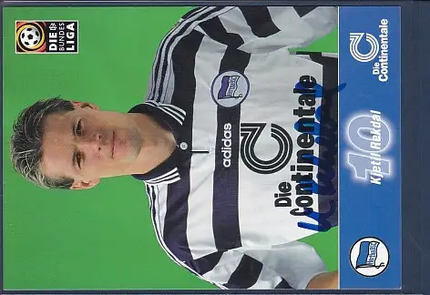 Hertha BSC 10 Kjetil Rekdal Mittelfeld, Saison 1998/99, Die Bundesliga, Vorderseite unterschrieben.