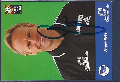 Hertha BSC Jürgen Röber Chef Trainer, Die Continentale, Saison 1998/99, Vorderseite unterschrieben.