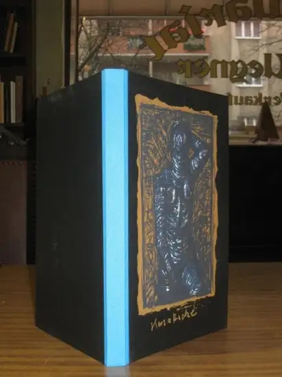 4°. (29,5 x 21 cm). Blauer Original-Halbleinenband mit Vorderdeckelillustration (Siebdruck von v. Lothar Böhme.). 124 Seiten, 3 Blatt). Mit 17 teilweise farbigen und signierten Radierungen, Siebdrucken sowie einer Zeichnung, einem Linoldruck, einem Holzschnitt und einer Lithographie. Der Band außen und innen sauber. Die letzte Tafel unten rechts mit einer Fehlstelle von ca. 6 cm (vom Künstler so beabsichtigt ?) Wenige Blätter leicht gewellt. Insgesamt jedoch schönes, richtig gutes Exemplar