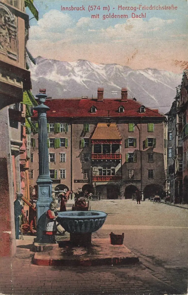 Herzog Friedrichstrasse mit goldenem Dach Innsbruck Österreich Postkarte AK