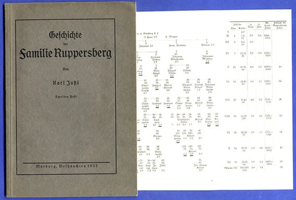 Hessen Marburg Grünberg Geschichte der Familie Ruppersberg Marburger Linie genealogische und regionalhistorische Buchausgabe in 2 Teilen von Karl Justi Marburg 1931/33