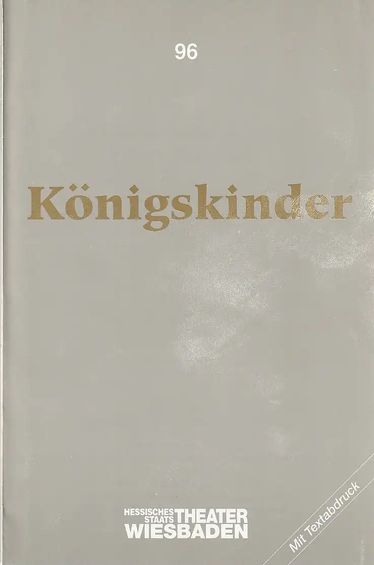 Titel: Programmheft Engelbert Humperdinck KÖNIGSKINDER Premiere 9. November 1991 Spielzeit 1991 / 92 Nr. 96