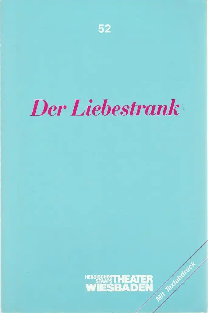 Hessisches Staatstheater Wiesbaden, Claus Leininger, Ehrhard Reinicke: Programmheft Gaetano Donizetti DER LIEBESTRANK Premiere 11. März 1989 Spielzeit 1988 / 89 Programmbuch Nr. 52.