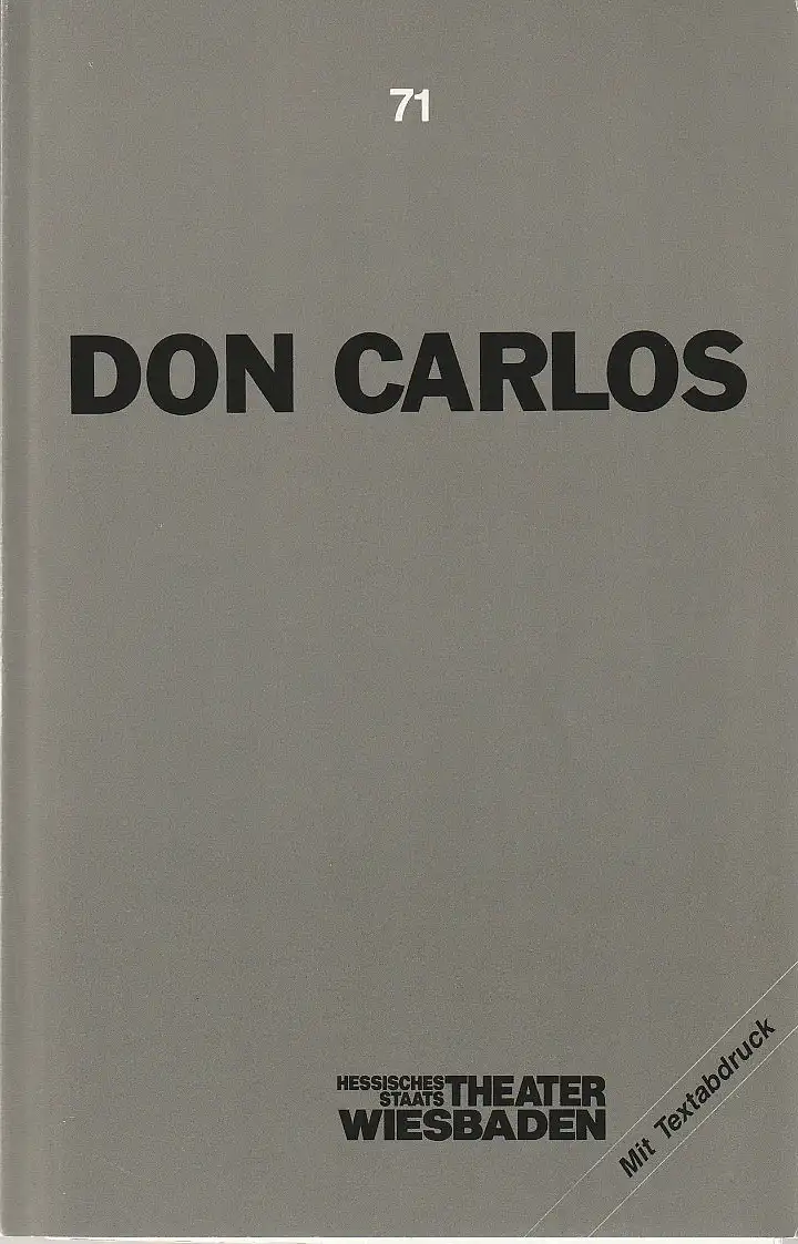 Hessisches Staatstheater Wiesbaden, Claus Leininger, Ehrhard Reinicke: Programmheft Giuseppe Verdi DON CARLOS Premiere 28. April 1990 Spielzeit 1989 / 90 Nr. 71.