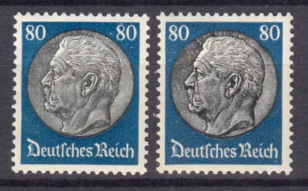 Hindenburg 80 pf. - 2 timbres: champ médian clair et sombre, les deux **