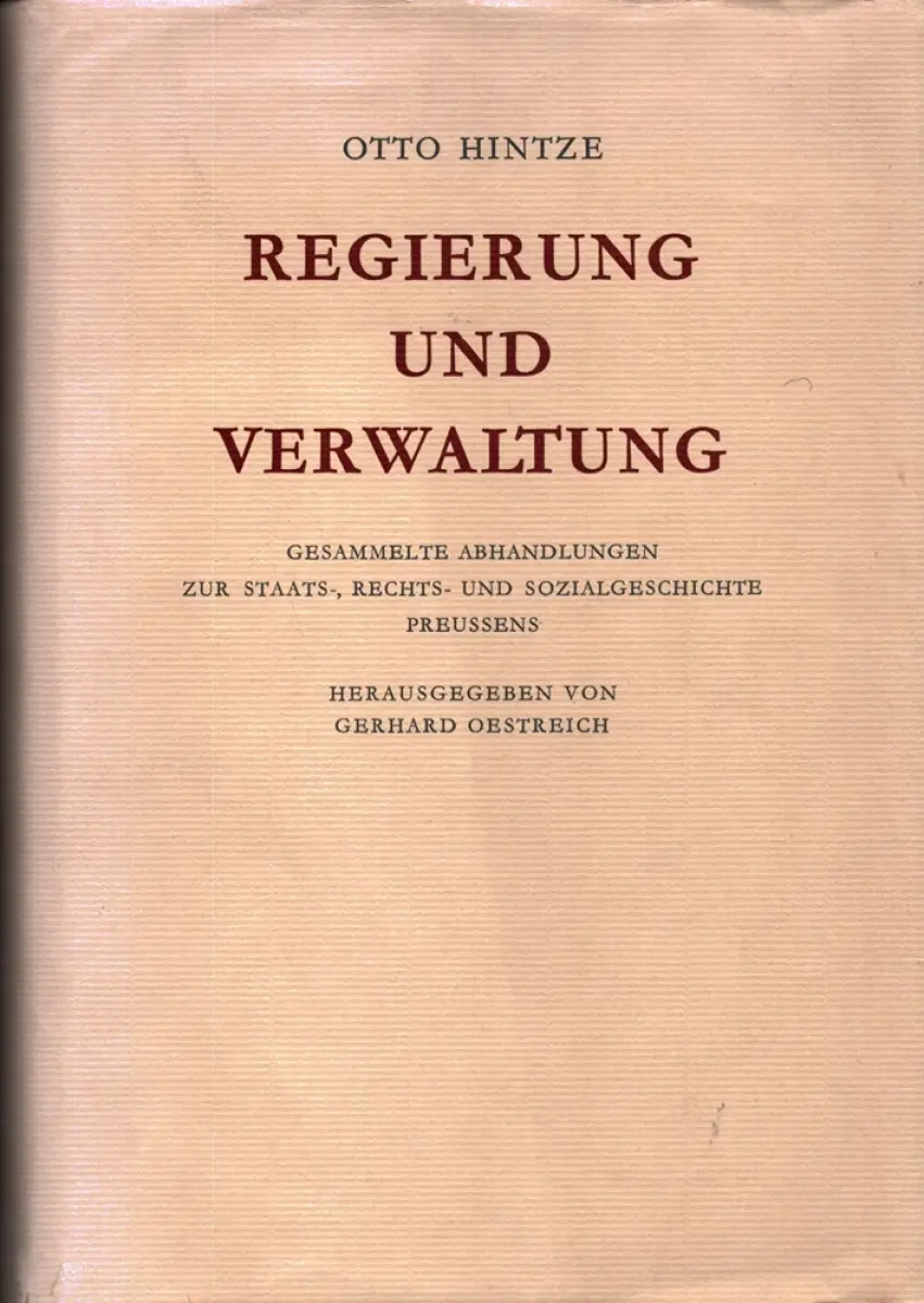 Hintze, Otto: Regierung und Verwaltung. Gesammelte Abhandlungen zur Staats-, Rechts- u. Sozialgeschichte Preussens. Mit Personen- u. Sachreg. zu Bd. 1-3. Hrsg. u. eingel. von Gerhard Oestreich. 2., durchges. Aufl.