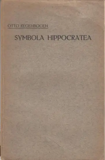 Hippokrates. - Otto Regenbogen: Symbola Hippocratea. Dissertatio Inauguralis quam ad Summos in Philosophia Honores Rite Capessendos Consensu et Auctoriate Amplissimi Philosophorum Ordinis in Alma Litterarum Universitate Friderica Guilelma Berolinen