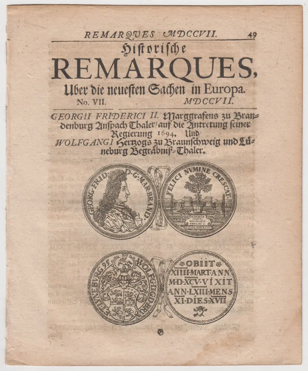 Historische Remarques, Über die neuesten Sachen in Europa No. VII / 1707