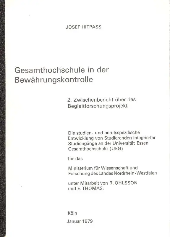 Hitpass, Josef: Gesamthochschule in der Bewährungskontrolle. 2. ZWISCHENBERICHT UEBER D. BEGLEITFORSCHUNGSPROJEKT. Die studien- und berufsspezifische Entwicklung von Studierenden integrierter Studiengänge an der Universität Essen Gesamthochschule (UEG).