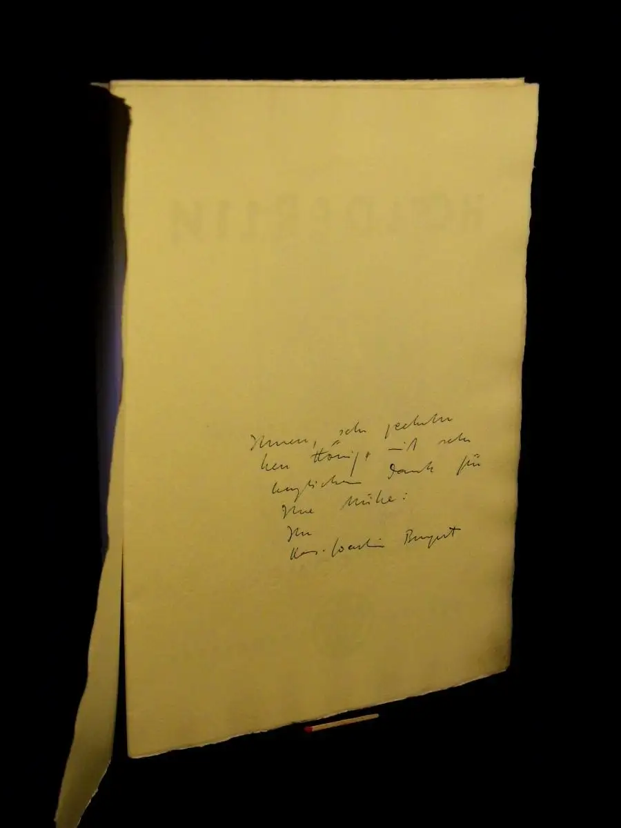 Freie Beschreibung: eines von 35 nummerierten Exemplaren, hier Nr. 16, siehe Spindler 154, 1, mit ganzseitiger Kupferätzung, mit handschriftlicher Widmung Hans-Joachim Burgerts, unbeschnittenes Bütten, auf dem Schmutztitel eine handschriftliche Widmung von Burgert: '... mit sehr herzlichem Dank für Ihre Mühe: Ihr Hans-Joachim Burgert' - leicht berieben und bestoßen mit kleinen Randläsuren, Druck teilweise etwas blass - intern764-2803 - Originalbroschur (Paperback)