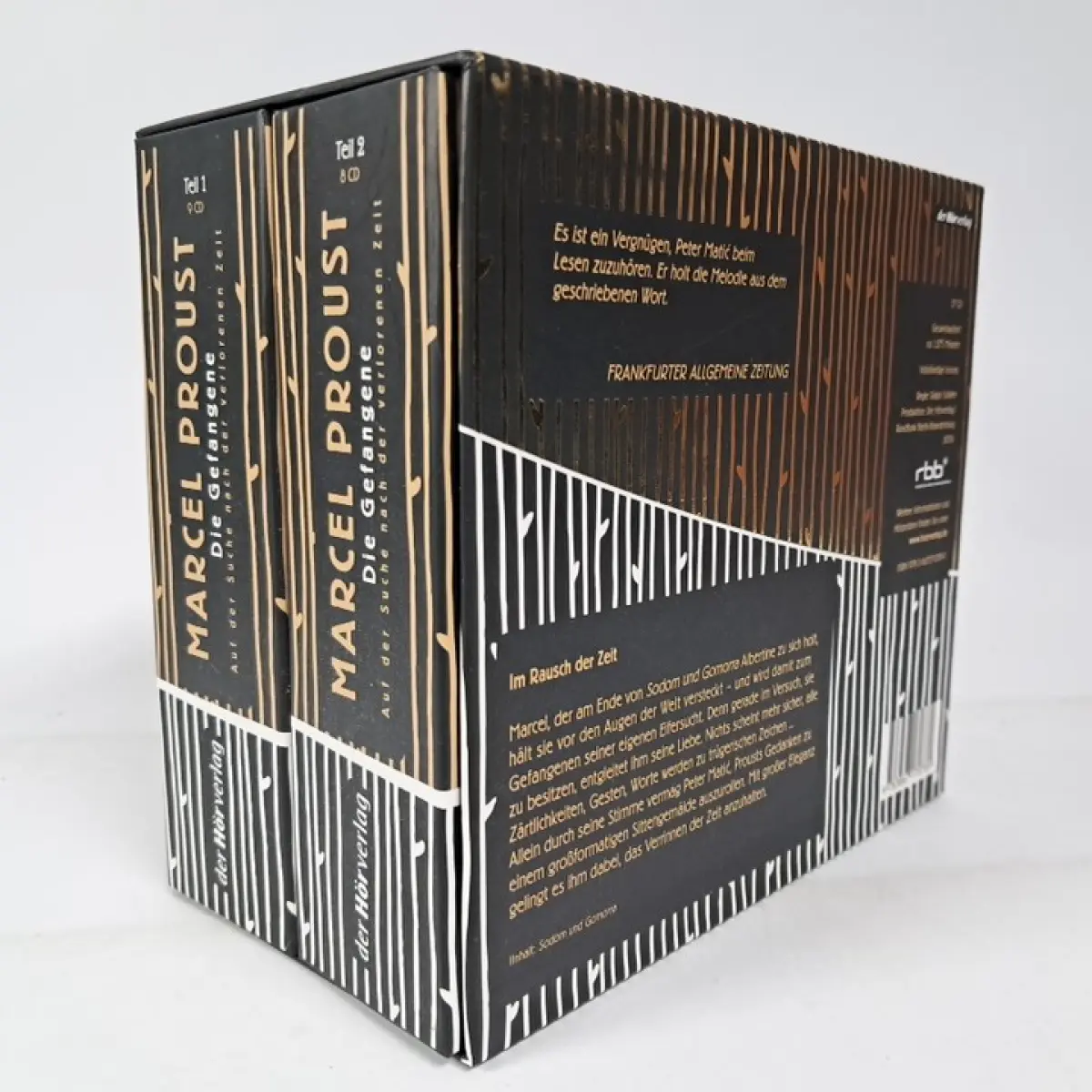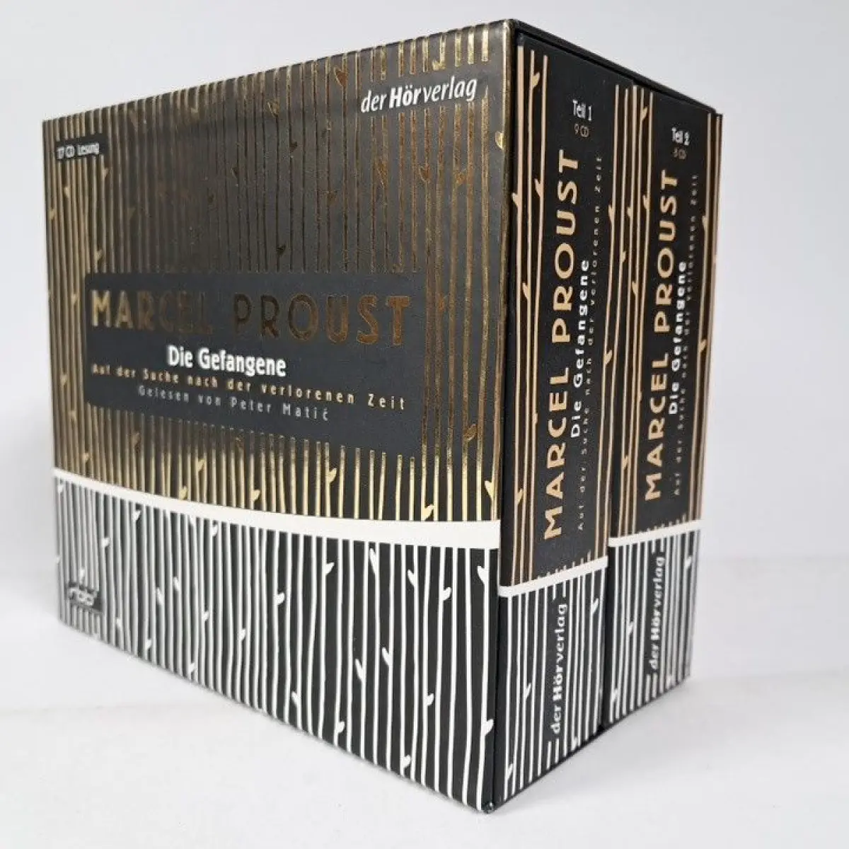 Bemerkungen: Zustand: sauber & frisch // Marcel, der am Ende von "Sodom und Gomorra" Albertine heiratete, hält sie vor den Augen der Welt versteckt und wird damit zum Gefangenen seiner eigenen Eifersucht. Gerade im Versuch, sie zu besitzen, entgleitet ihm seine Liebe. Nichts scheint mehr sicher - Zärtlichkeiten, Gesten, Worte - werden zu trügerischen Zeichen. Man kann Peter Matic dabei zuhören, wie er mit großer Eleganz Prousts Gedanken zu einem großformatigen Sittengemälde ausrollt und es ihm gelingt, das Verrinnen der Zeit im Rausch des puren Zuhörens anzuhalten.(17 CDs, Laufzeit: 21h 15).