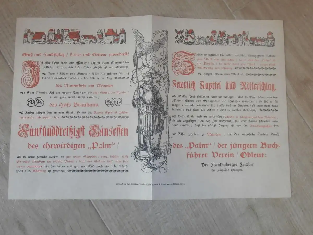 Hofbräuhaus München , 9.11.1912 , Verein jüngerer Buchhändler , Gansessen , Ritterschlag , Brauhaus , ca 37 x 24,5 cm !!