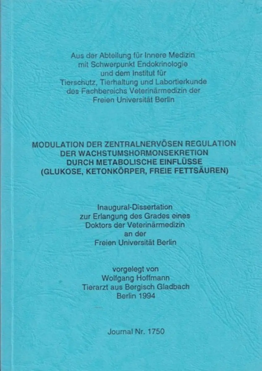 Hoffmann, Wolfgang: Modulation der zentralnervösen Regulation der Wachstumshormonsekretion durch metabolische Einflüsse (Glukose, Ketonkörper, Freie Fettsäuren). Disseratation FU Berlin (Veterinärmedizin).