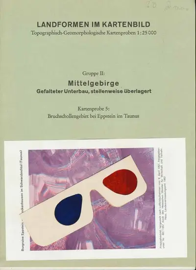 9 farbige Karten in der Deckeltasche nebst 1 Anaglyphenbild "Burgruine Eppstein und Volckenhausen im Schwarzbachtal mit beiliegender Anaglyphenbrille. OKt., 10 S. + 9 Karten + 1 Taf. + Brille, 4°.