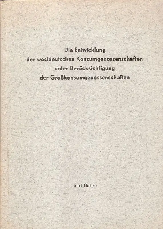 Holexa, Josef: Die Entwicklung der westdeutschen Konsumgenossenschaften unter Berücksichtigung der Großkonsumgenossenschaften. (Dissertation).