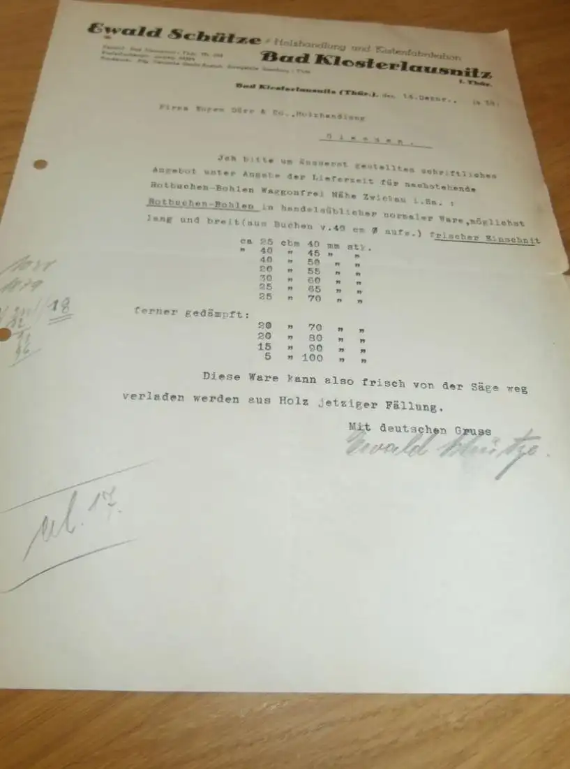 Holzhandel - Ewald Schütze in Bad Klosterlausitz , 1938 , altes Dokument !!