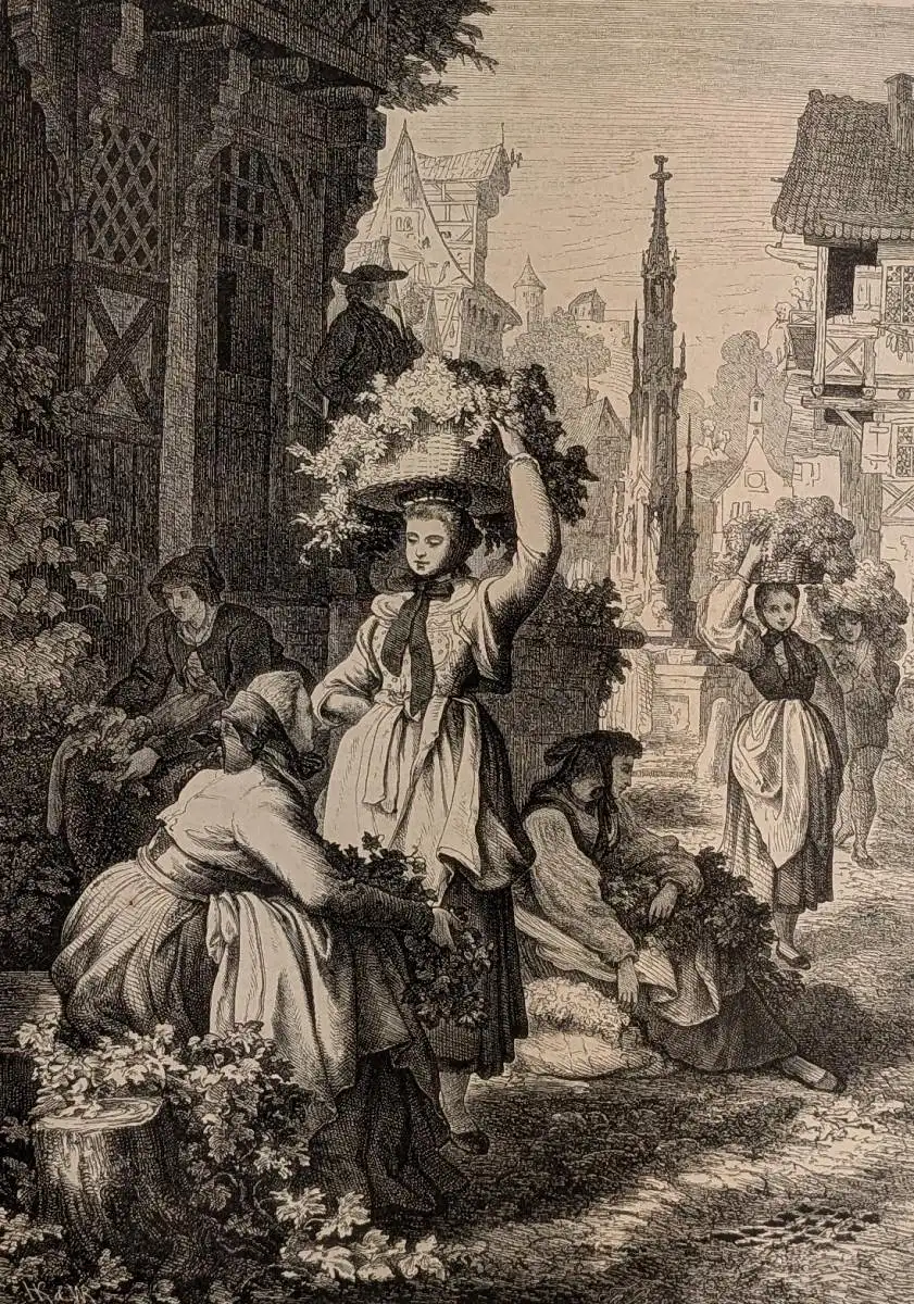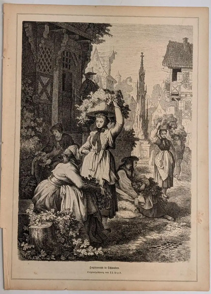 Bemerkungen: Zustand: Gut. Das Blatt ist altersbedingt leicht fleckig und berieben // Es handelt sich um eine Holzstich-Reproduktion für die Publikation "Daheim". Das Original stammt von Th. Piris. Das Motiv selbst hat die Maße 28,0 x 18,5 cm. Die Zeitschrift Daheim war eine deutsche illustrierte Familienzeitschrift, die von der Mitte des 19. Jahrhunderts bis in die erste Hälfte des 20. Jahrhunderts erschien. Sie war eine der populärsten und weitverbreitetsten Zeitschriften ihrer Zeit im deutschsprachigen Raum.