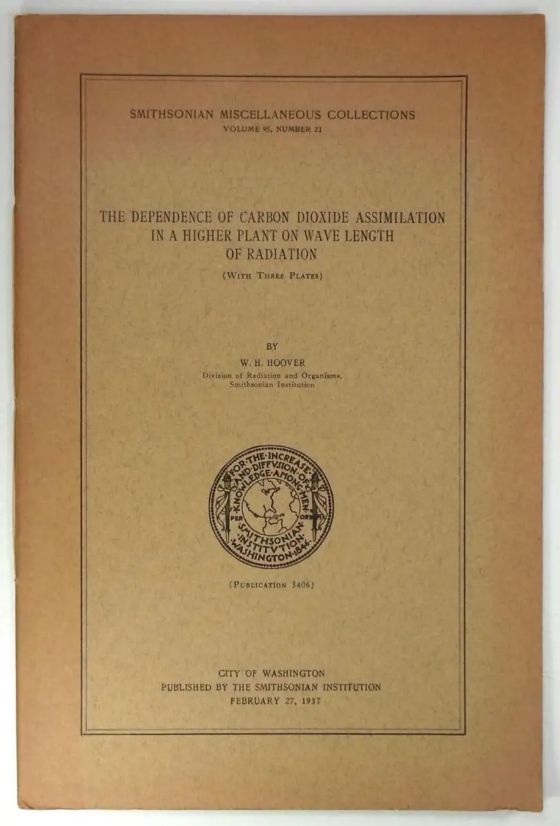 Hoover, W. H: The dependence of carbon dioxide assimilation in a higher plant on wave length of radiation. (Smithsonian Miscellaneous Collections, Volume 95, Number 21).