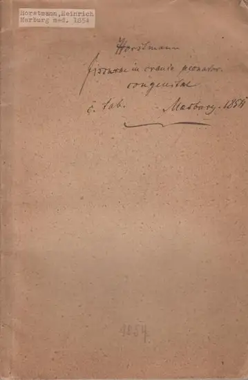Horstmann, Henricus (Heinrich): De fissuris in cranio neonatorum congenitis. Dissertatio inauguralis medico-forensis quam [...] in Academia Marburgensis ad veniam legendi [ ! ] obtinendam scripsit et (22. Juli 1854) publice defendet.