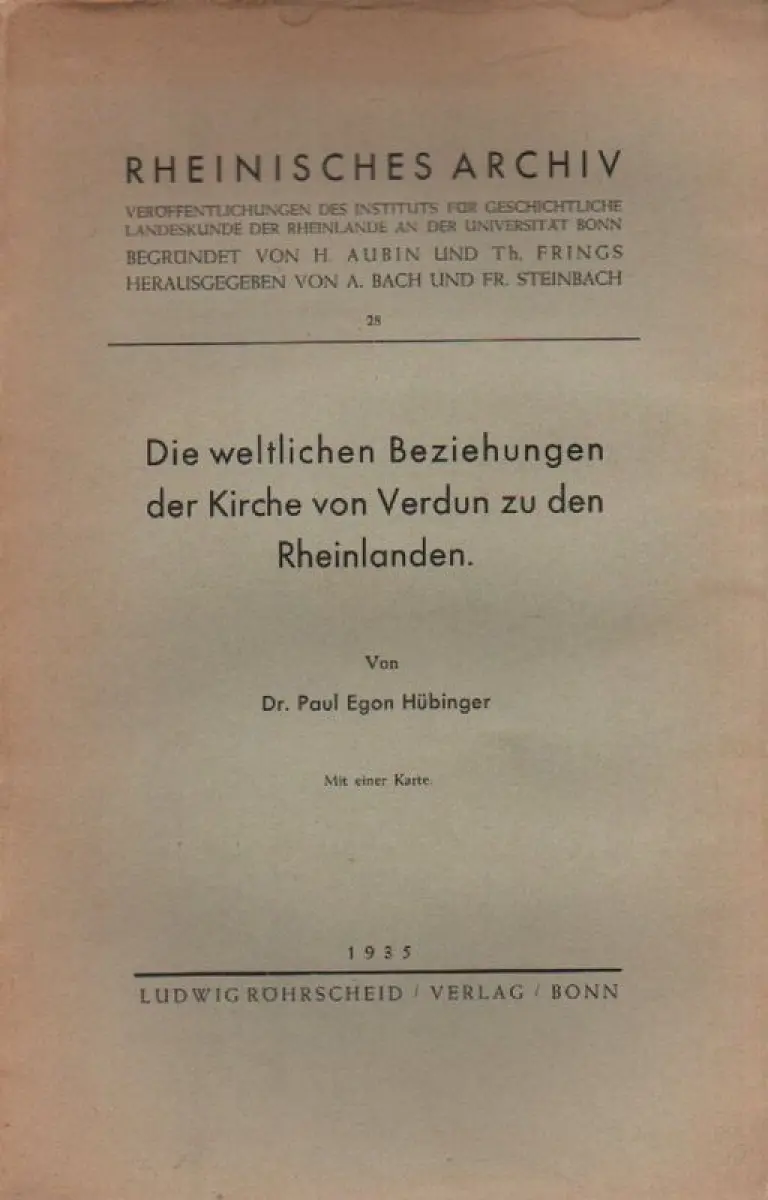 Hübinger, Paul Egon: Die weltlichen Beziehungen der Kirche von Verdun zu den Rheinlanden. (Rheinisches Archiv ; 28).