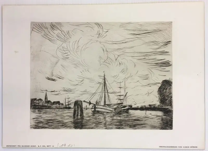 Aus Zeitschrift für Bildende Kunst, N.F. XXI, Heft 12. - Der deutsche Maler des Impressionismus malte in Berlin, im Havelland und in den Sommern in Hamburg, Lübeck, Warnemünde und Travemünde (dort hatte er zwischen 1909 und 1912 seinen Hauptwohnsitz), insbesondere auch viele Hafenbilder. - Kleinere Fleckchen im rechten und linken Außenrand