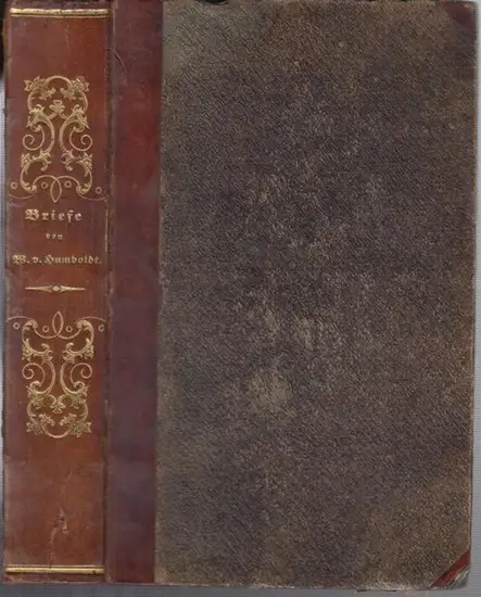 Freie Beschreibung: 21,2 x 13,5 cm. Braunes originales Halbleder mit goldgeprägtem Rückentitel und floraler Goldornamentierung. XXIV, 381 Seiten mit einem Faksimile der Humboldt'schen Handschrift von 1788 / VI, 312 Seiten. Der Einband am Rücken oben und unten etwas angeplatzt, mit Gebrauchsspuren. Das Papier ist durchgehend schwach bis stärker braunfleckig, am oben Rand auch feuchtspurig. Vorderer Innendeckel mit einem heraldischen Ex-libris des Louis Heinrich Wätjen, nebst dreizeiligem Vorbesitzervermerk in alter Tinte auf dem gegenüberliegenden Vorsatz, datiert 1848. Befriedigender Zustand