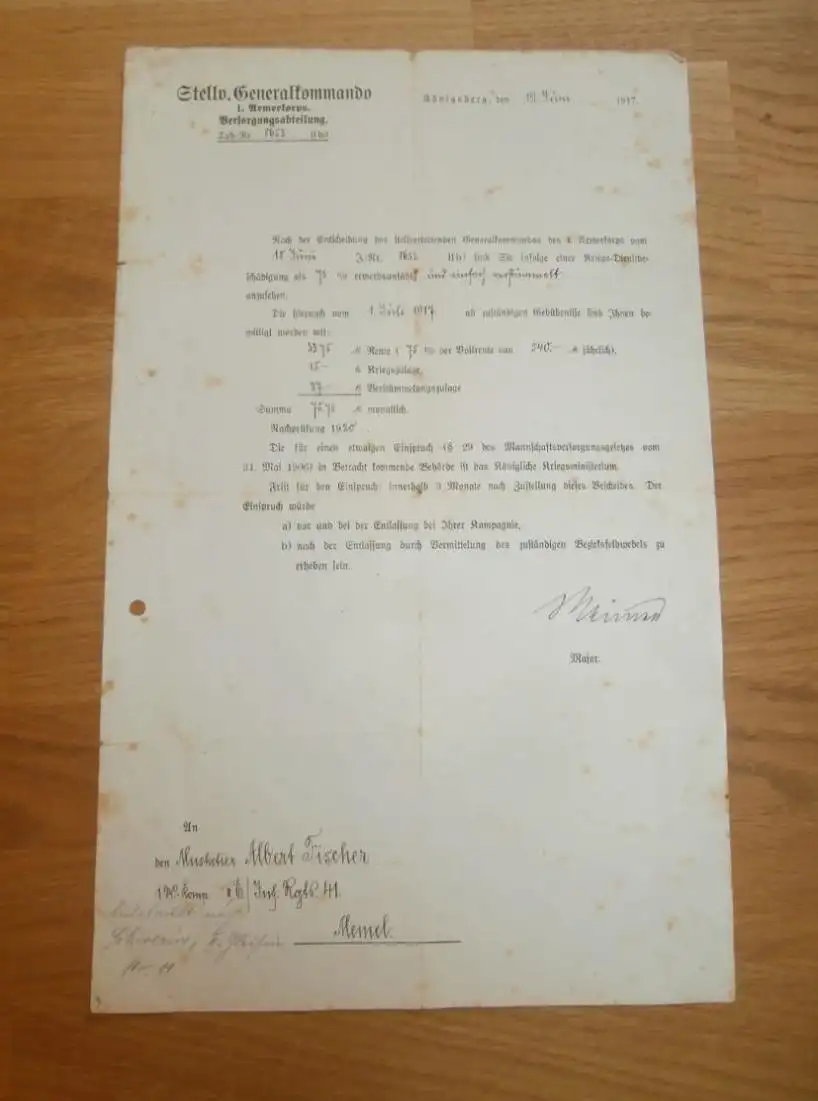 I. Armeekorps - Generalkommando - Königsberg , 1917 , Musketier Albert Fischer Inf.Rgt. 41 , Memel !!!AZ-WR/1c