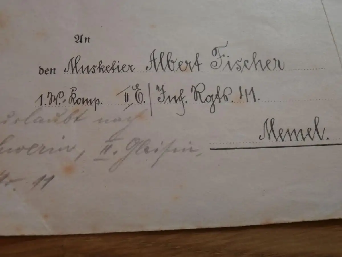I. Armeekorps - Generalkommando - Königsberg , 1917 , Musketier Albert Fischer Inf.Rgt. 41 , Memel !!!