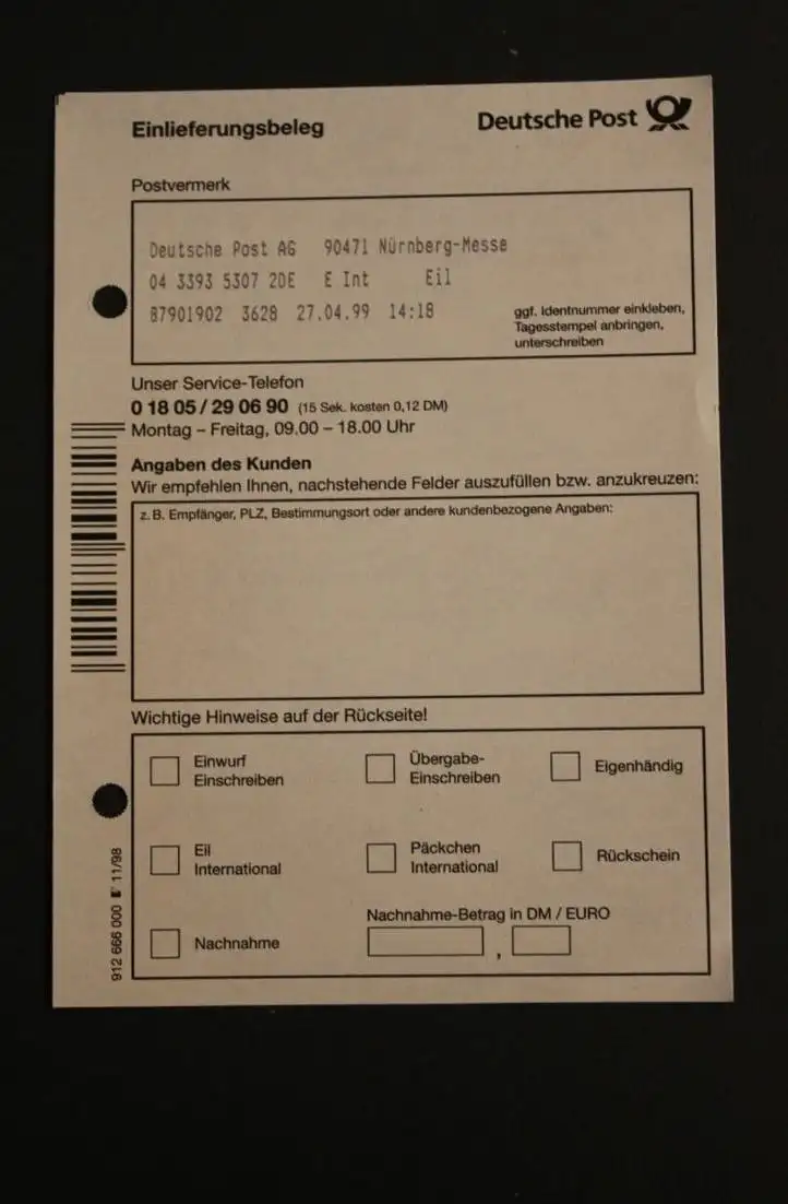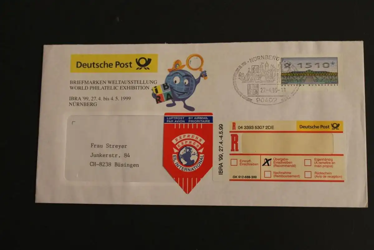IBRA '99 Nürnberg; R-Brief; Eil-International in die Schweiz