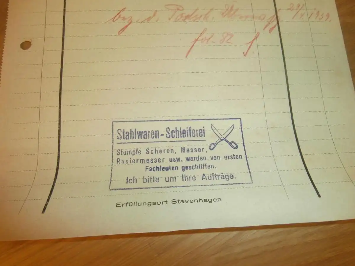 I.H. Seemann in Stavenhagen i. Mecklenburg , 1939 , B. Kronke , Porzellan , Steingut , alte Rechnung !!!AZ9-s