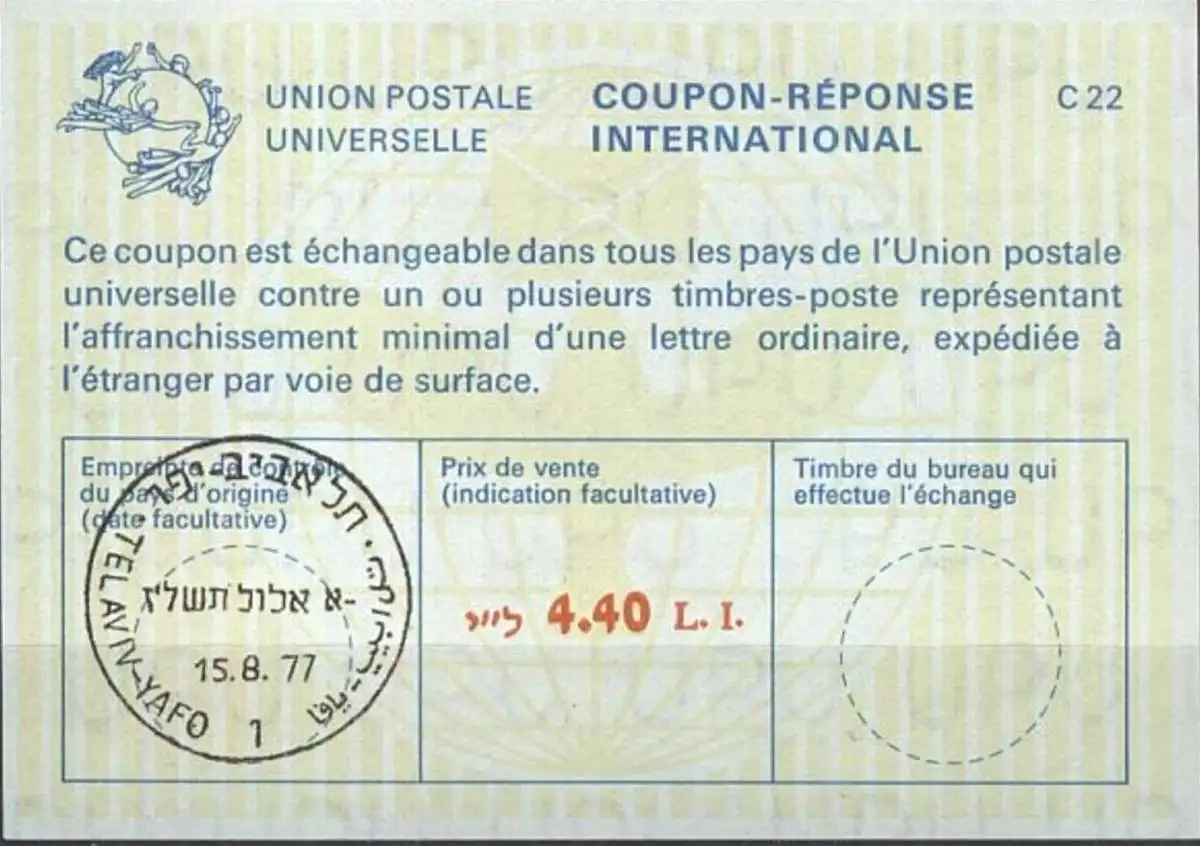 ISRAEL 1977 Nr. 60 IAS IRC CRI Int. Antwortschein 4.40 L.I.