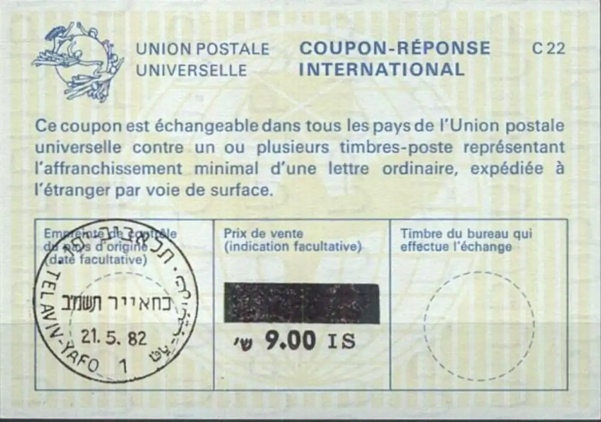 ISRAEL 1982 Nr. 121 IAS IRC CRI Int. Antwortschein 9.00 auf 6.70 IS