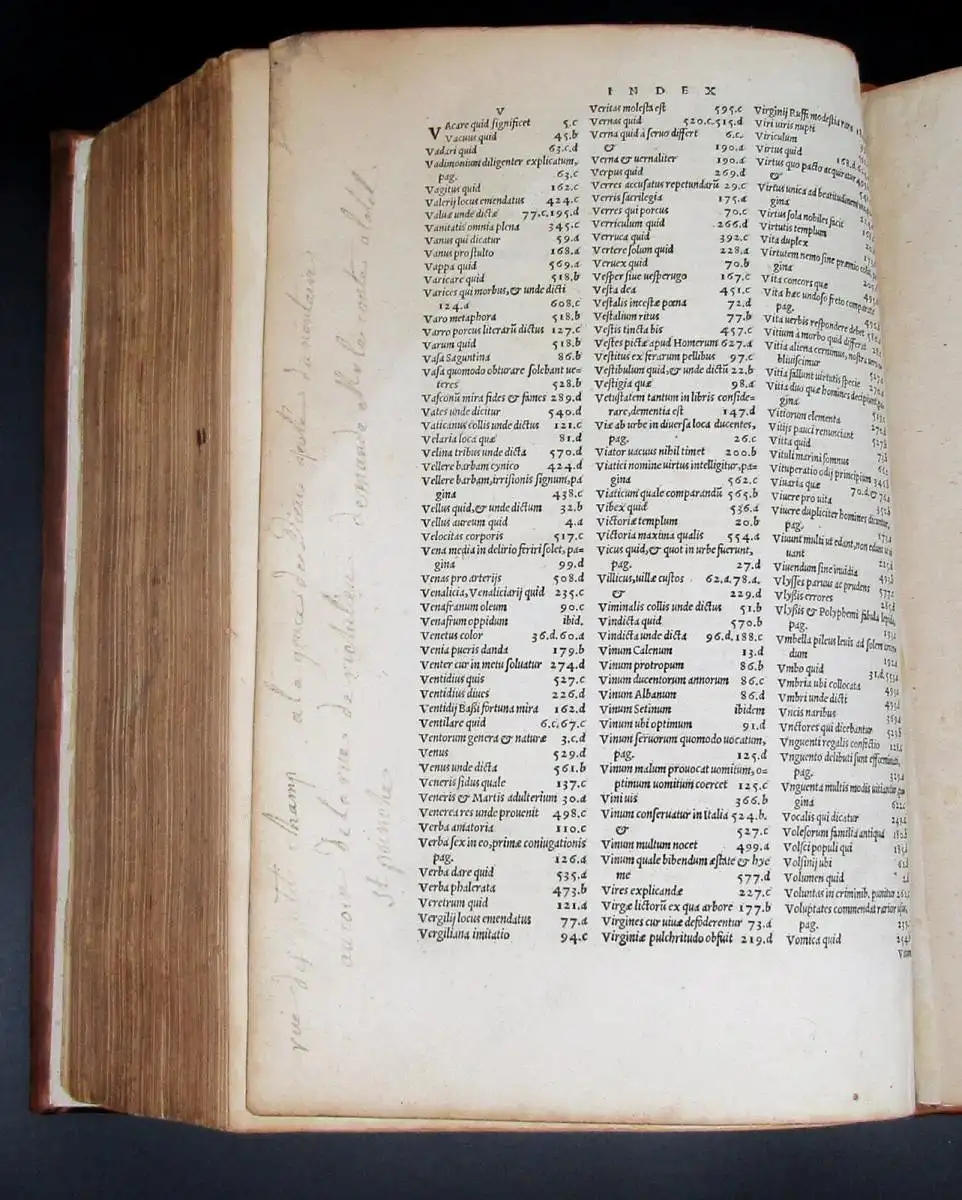 Einband berieben und bestoßen, hs. Rs., Spiegel/Vorsatz erneuert, Titel mit hs. Vermerken, letztes Blatt Index und Druckermarke fehlen, Papier altersbedingt gebäunt, leicht wurmspurig, stellenw. braunfleckig
