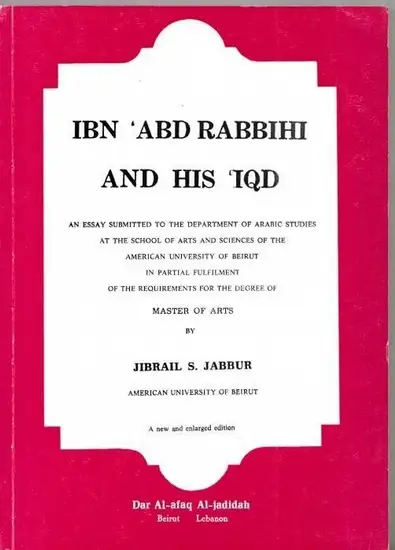 Ibn 'Abd Rabbihi. - Jabbur, Jibrail Sulaiman: Ibn 'Abd Rabbihi and his 'IQD. An essay submitted to the department of arabic studies at the school of arts and sciences of the american university of Beirut.
