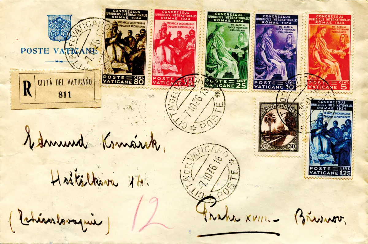 Rechtsnr. 41/46 die komplette + ergänzende Serie Nr. 24 auf Umschlag Racc. nach Prag am 7.10.36 - Selten - Kat. euro 450 Cod. 854/16