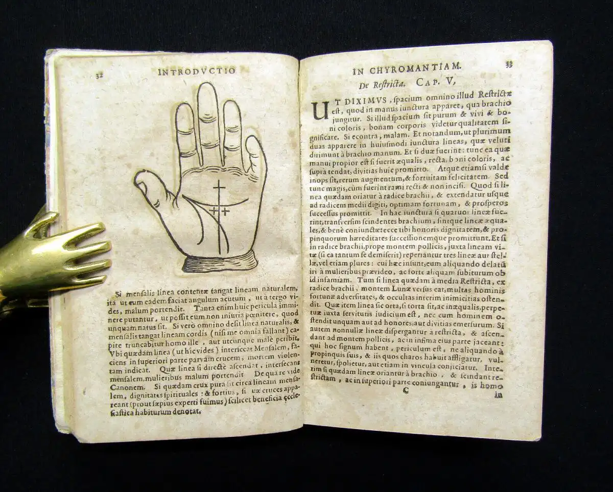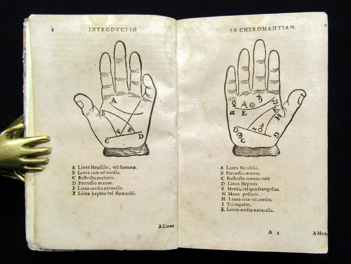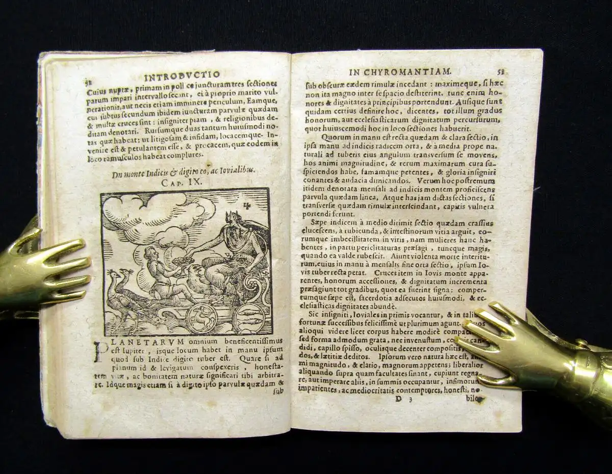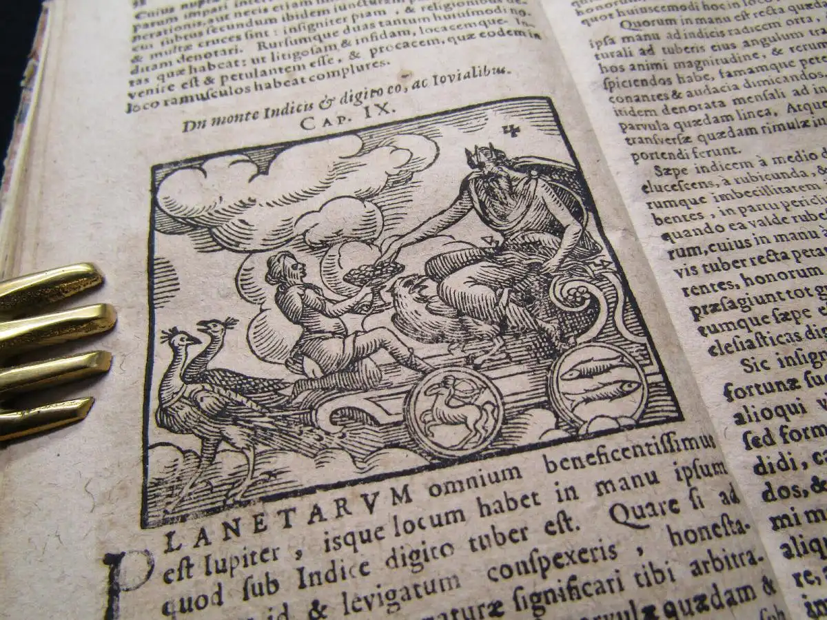 Die Holzschnitte mit Darstellungen chiromantischer und astrologischer Figuren, allegorischer Planetendarstellungen sowie Doppelporträts zur Physiognomie.