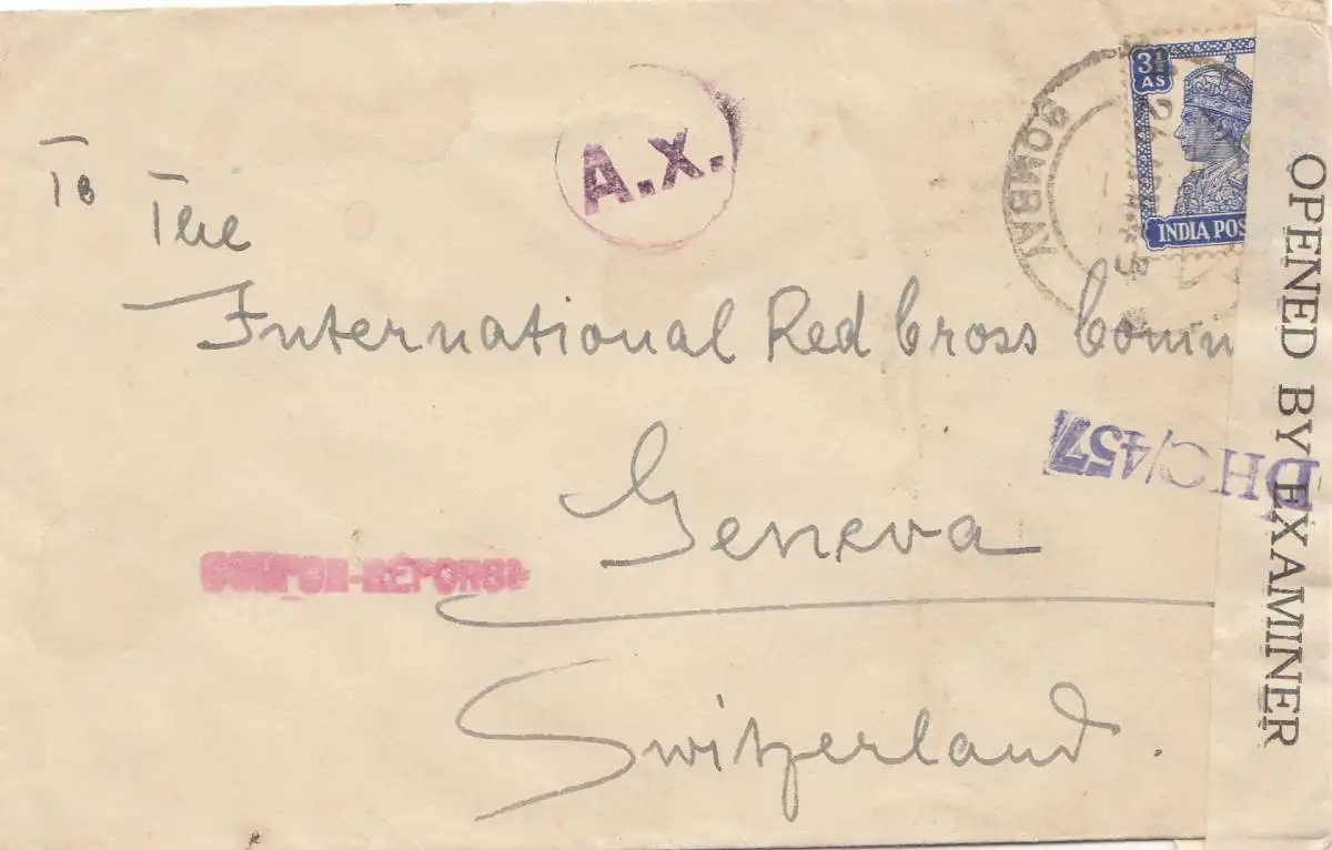 India 1943: Bobmay to Geneva/Red Cross, centre
