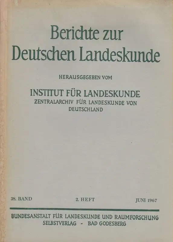 Institut für Landeskunde und Raumforschung (Hrsg.): Berichte zur Deutschen Landeskunde. 38. Band, 2. Heft, Juni 1967. Enth. (u.a.): Die Städte im Saarland in geographisch-landeskundlichen Kurzbeschreibungen. / Industrieanlagen im mittleren und unteren Mo