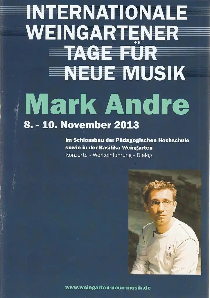 Internationale Weingartener Tage für neue Musik 2013, Daniel Schreiner: Programmheft MARK ANDRE 8. - 10. November 2013.