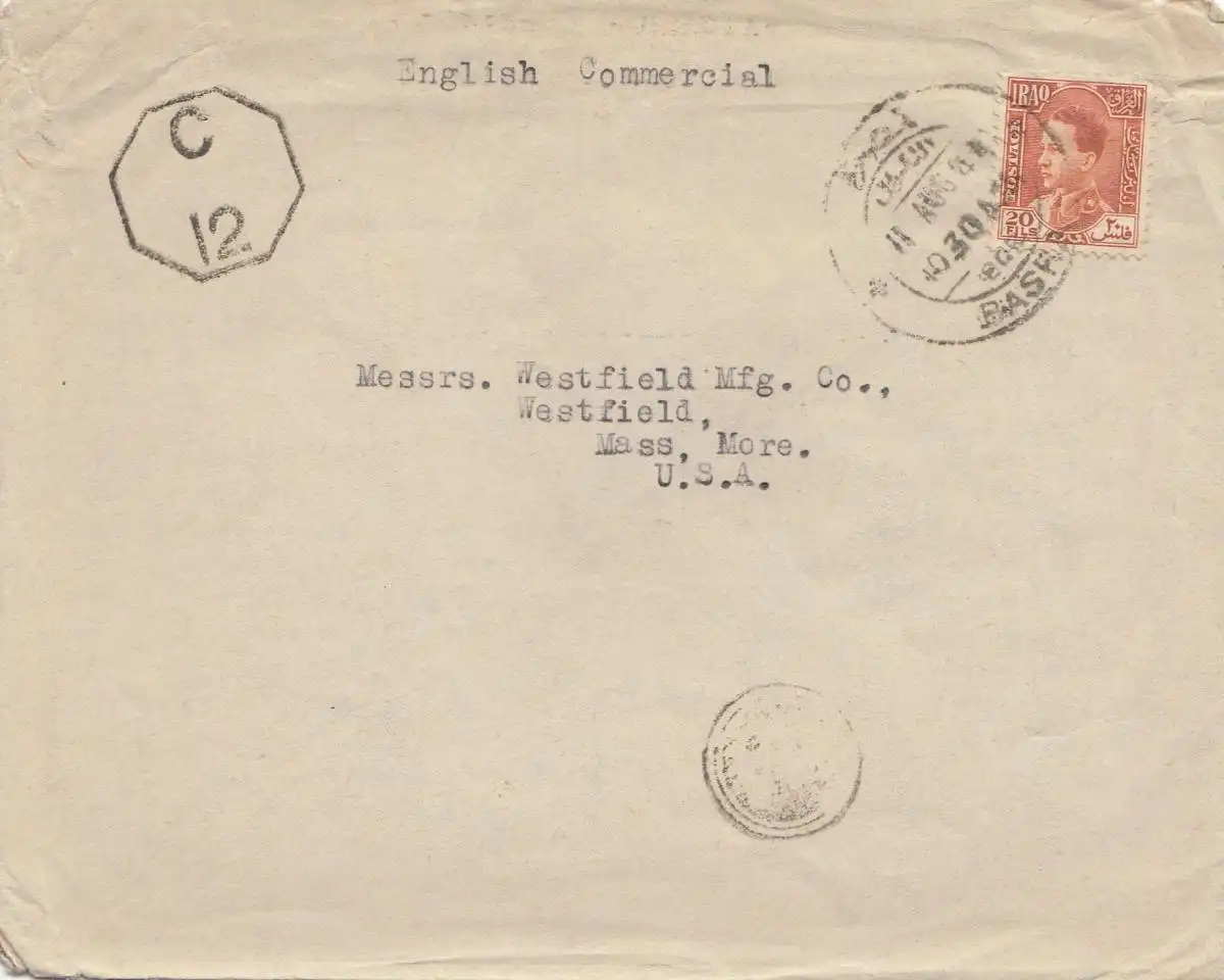 Iraq: 1946 Basrah to Westfield, Mass, USA, centre