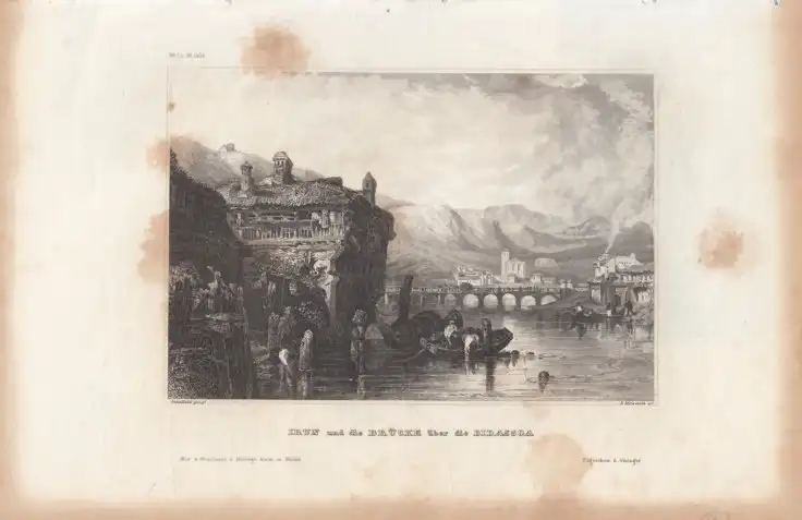 Bemerkungen: Zustand: Blatt leicht fleckig und altersbedingt minimal gebräunt an den Rändern, mit minimalen Randläsuren // Kunstgrafik. Bibliographisches Institut. Ansicht: 9,5 x 14 cm