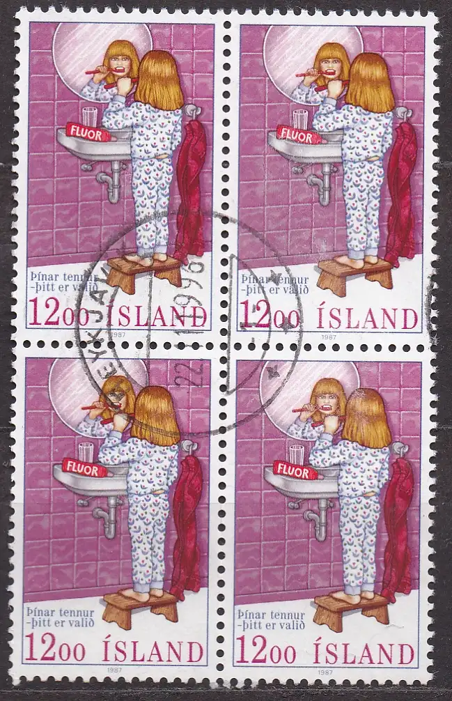 Island, Mi-Nr. 673 gest., 4´er-Block, Zahnschutz-Kampagne