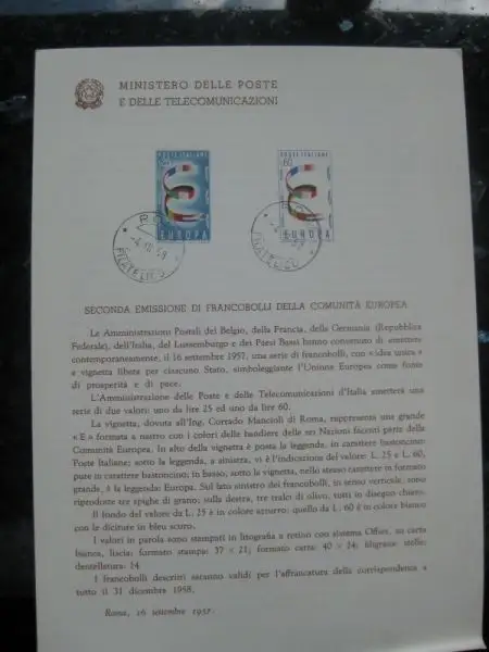 Italien CEPT 1957 Ankündigungskarton Amtl. Bollettinio des Postministeriums zur Michel-Nr. 992-23