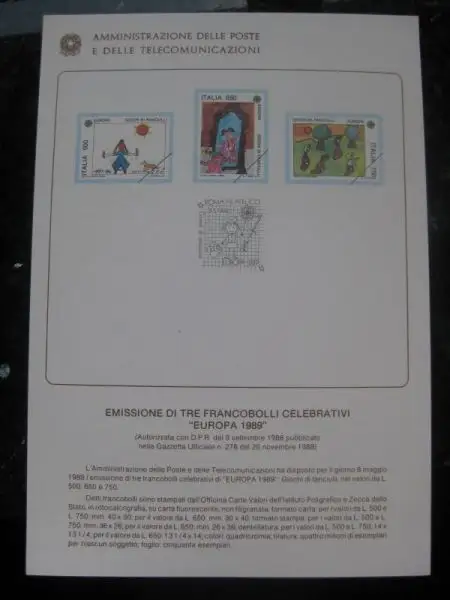 Italien CEPT 1989 Ankündigungskarton Amtl. Bollettinio des Postministeriums zur Michel-Nr. 2078-80