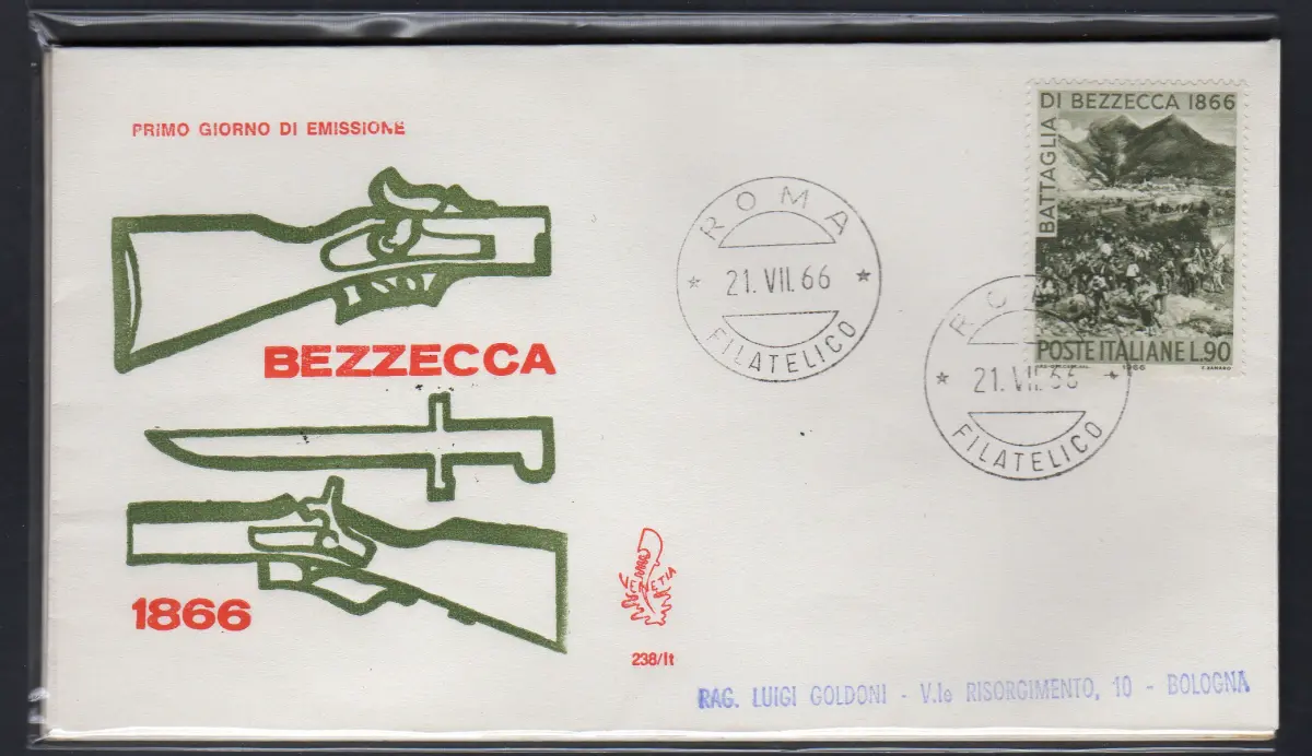 Italien FDC Venetia 1966 Bezzeca isoliert nach Italien gereist Italien 1966 Bezzeca isoliert auf Umschlag nach Italien gereist mit Annullierung der Ankunft Annullo Roma Philatelico Cod. 705/Venetia